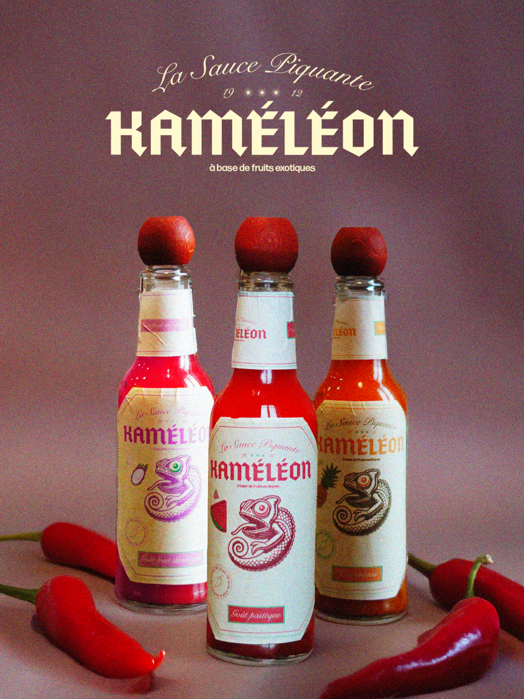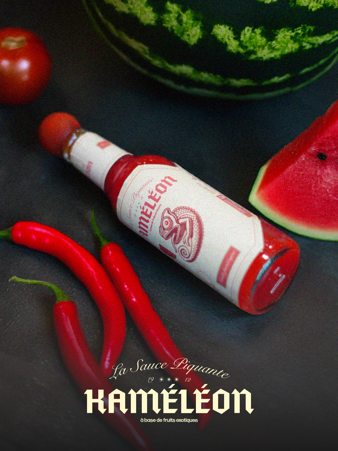 Kaméléon est une sauce piquante dont chaque recette transforme l’expérience gustative. L’identité devait être expressive, mémorable et différenciante.