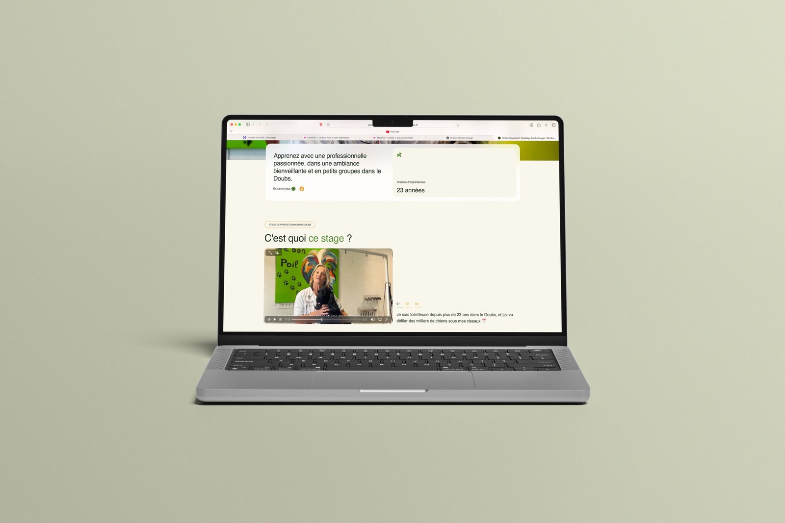 Le projet a débuté par une phase de cadrage stratégique afin de bien distinguer l’activité de toilettage classique de la nouvelle offre de formation, tout en conservant une cohérence globale de marque.
