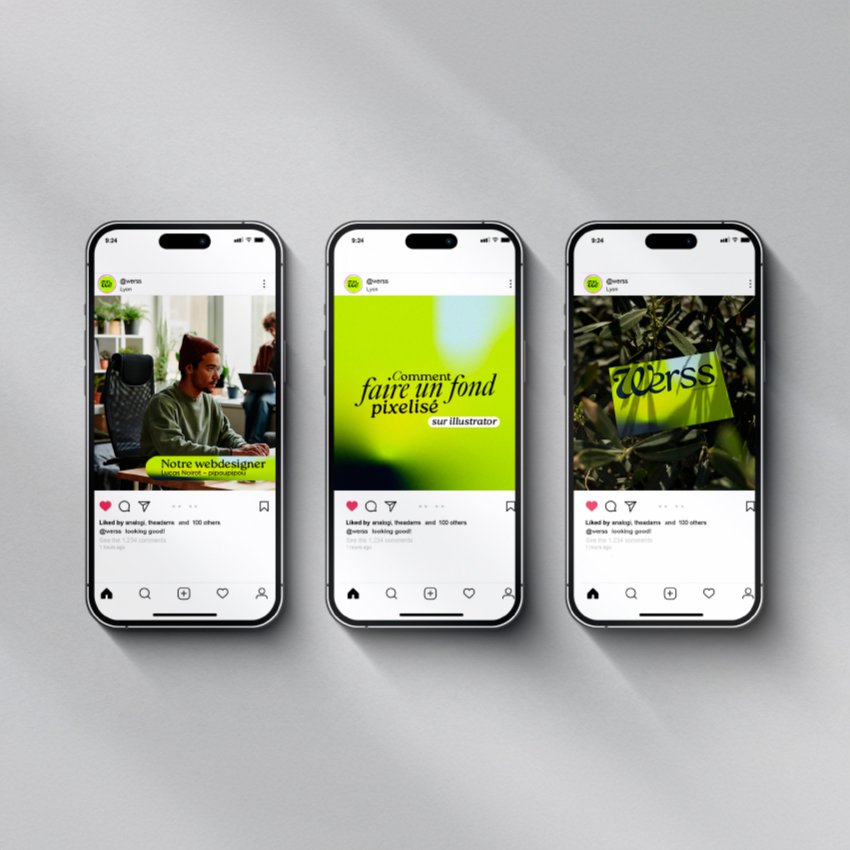 Nous avons conçu l’identité graphique complète du collectif de freelances Werss, en développant l’ensemble de son univers visuel, de la stratégie de marque aux supports de communication.
